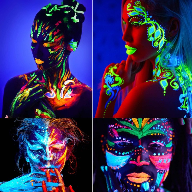 - 👍【Applicable to a Variety of Occasions】Blacklight neon body paints will glow in the dark, suitable for school dances, Halloween, Christmas, parties, carnivals and many other occasions, so you stand out in the crowd.