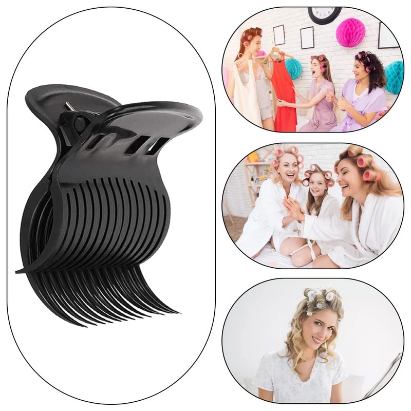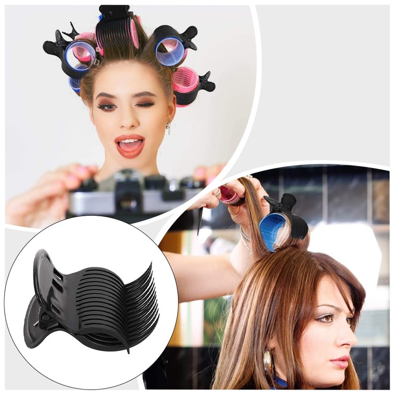 12 Pcs Hot Roller Clips Plastic Hair Curler Claw Clips Hair Section Stylings for Women Girls (Black)