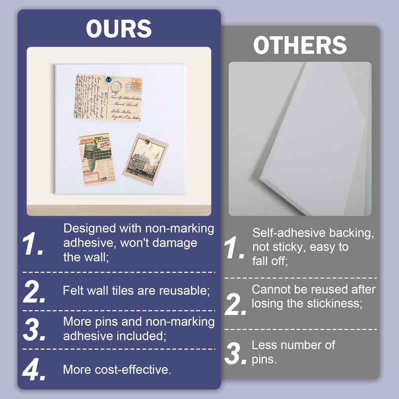 - 【Super Strong Sticky Non-Tracking Adhesive】We use super strong sticky non-tracking adhesive, which allows our high density felt wall tiles to be reusable and also prevents damage to the wall when peeling off. Please be careful to follow the method provided in our video to peel the film off the wall to avoid damaging the wall!