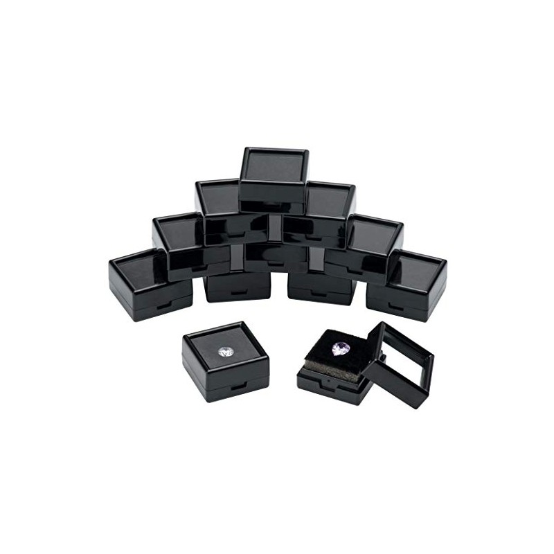 12 PCS Loose Gemstone Display Box Jewelry Box Container with Glass Top Lids for Gems, Diamond,Diameter 1.1”(Black)