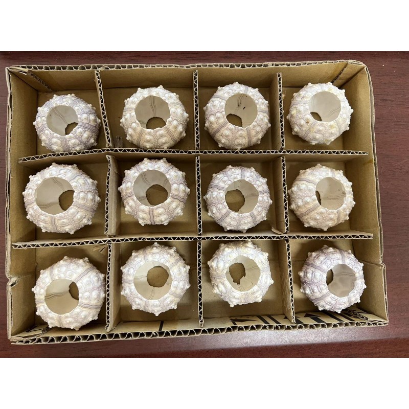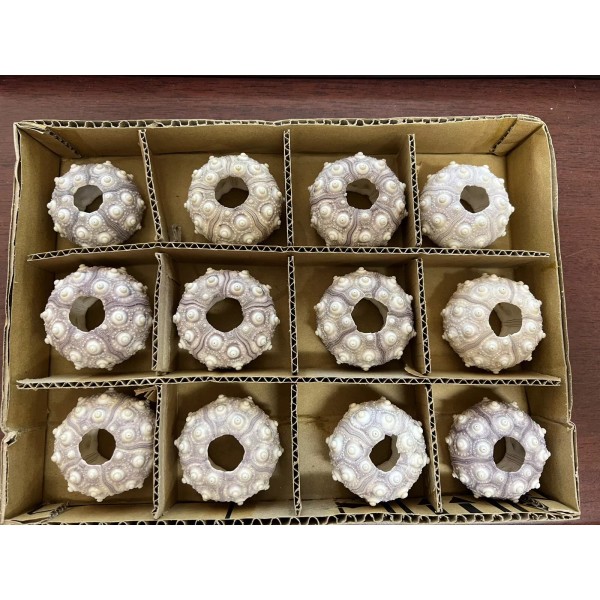 This is for a lot of 12 purple sputnik sea urchins. The size is 2 1/2" - 3".