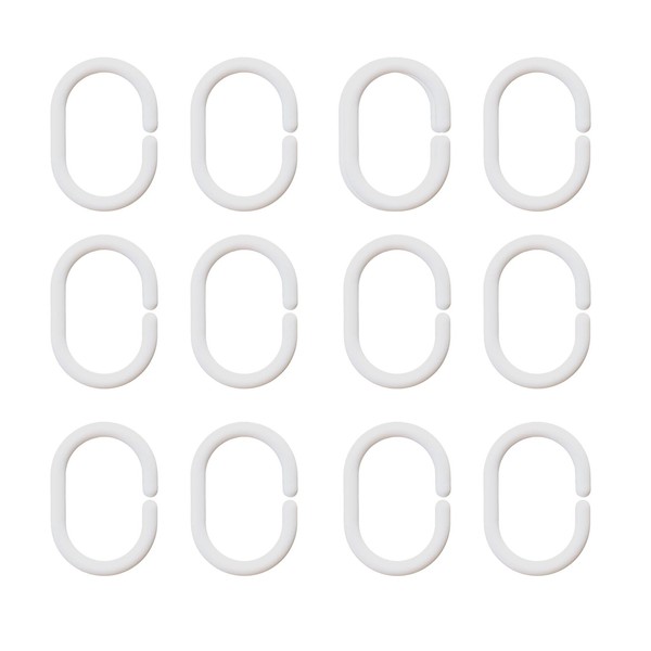 12 pcs Shower Curtain Rings Plastic Shower Curtain Hooks C-Shaped Rings Hook Hanger Bath Drape Loop Clip Glide for Bathroom Shower Window Rod(White)