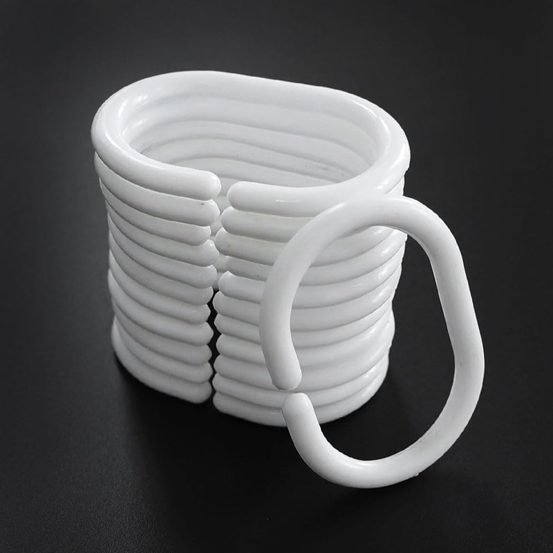 - The shower curtain hook set consists of 12 plastic hooks. It is convenient to install and remove on the shower rail.
