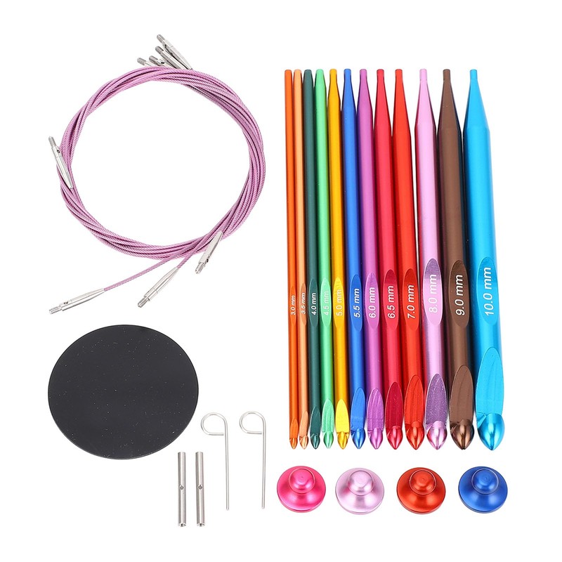12 Pcs Tunisian Crochet Hooks Set, 3mm-10mm Long Crochet Hooks with Cable, Colorful Aluminum Interchangeable Crochet Hooks Set, Tunisian Afghan Aluminum Knitting Needles Set