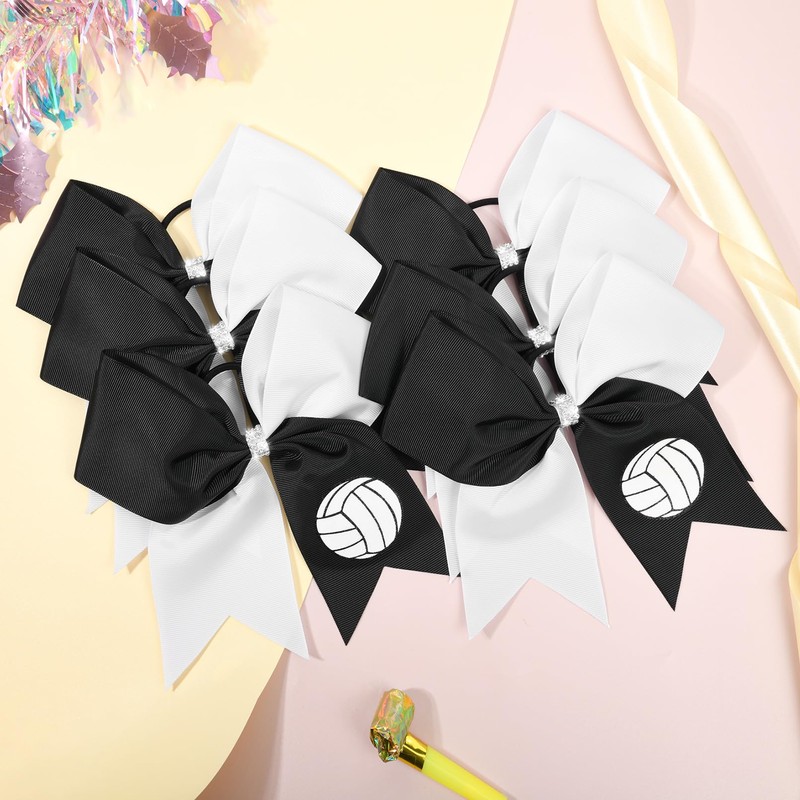 - 🌟 Show Your Team Spirit with Volleyball Cheer Bows-- Boost your game-day look with our volleyball cheer bows! Designed with eye-catching volleyball patterns and vibrant colors, these bows are perfect for volleyball games, tournaments, pep rallies, and cheerleading performances. Each bow is securely attached to a durable elastic ponytail holder, ensuring a firm hold throughout every jump and spike.
