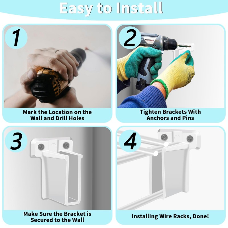 - Sufficient Quantity for Bulk Use: Each package includes 12 wire shelf end brackets and 24 screws, providing enough components for larger shelving projects. This bulk set is perfect for organizing multiple areas or for long-term use, with a maximum weight capacity of 10 pounds per bracket