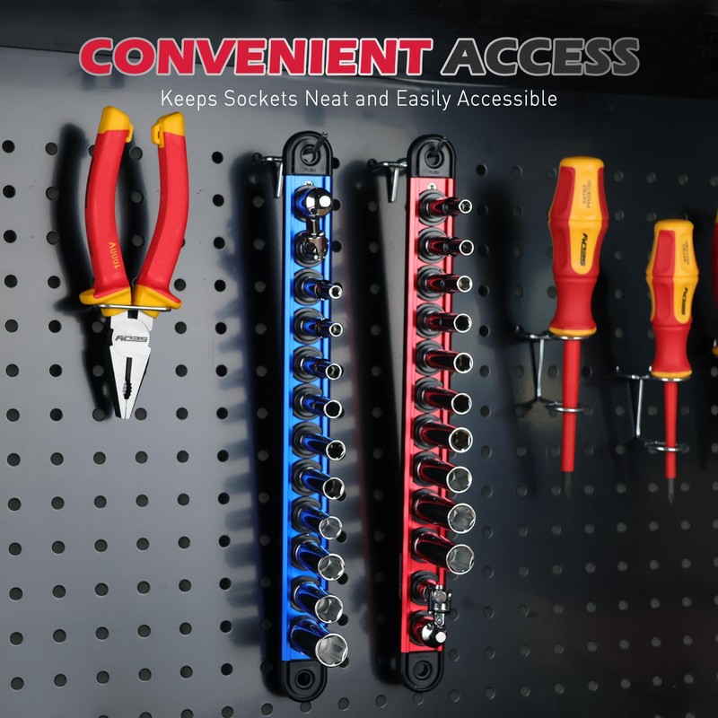 - VERSATILE STORAGE - With a strong magnetic back, this socket organizer tray attaches to any metal surface or can be hung on walls and hooks, offering flexible storage options for your tool box, drawer, or garage