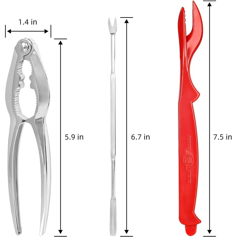 - Ergonomic Design - The seafood crab leg fork/pick is made of high quality food grade stainless steel, which is convenient, durable and easy to clean. The crab leg V-shaped fork can get the meat out of most difficult parts to reach to or out of hardest parts to break without worrying about waste; and the red food-grade plastic lobster sheller is not only stylish but also ergonomically designed, make our process of enjoying delicious seafood more fun, perfect for restaurants, picnics and home use.