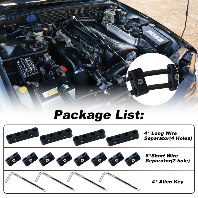 - spark plug wire separators comes with an Allen key to help take it apart and put it back together under the hood, with one-click installation, and no tedious installation steps.