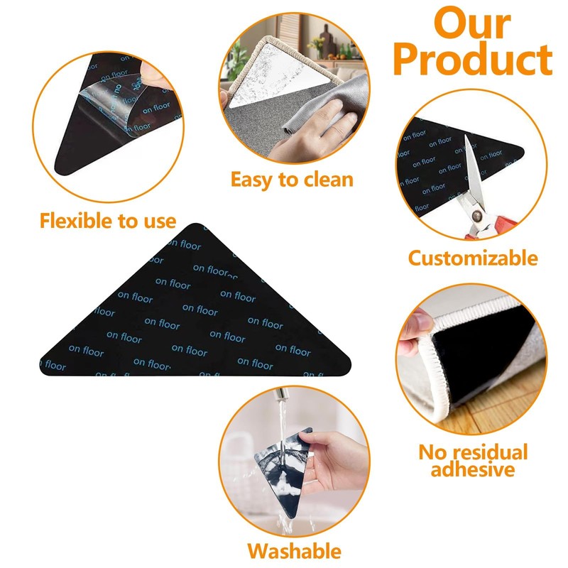 - Easy Installation You just need to peel off the protective film and stick it to the bottom of the carpet. No special tools or adhesives are required, so you can easily attach your carpet.