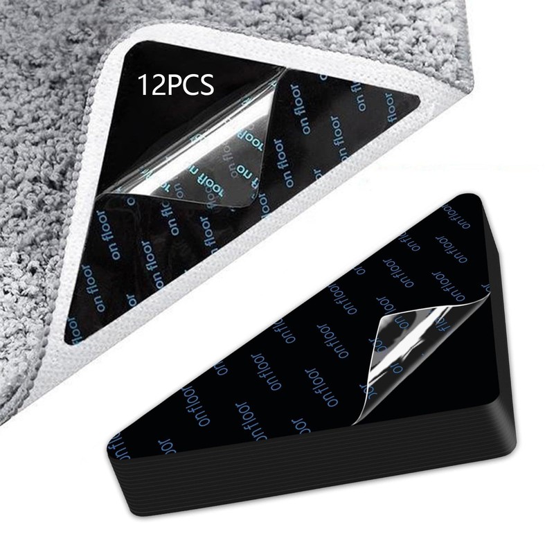 12 pieces carpet tape, carpet grippers for hardwood floors and tiles, keep area carpet flat, reusable, washable tape, large pad gripper, non-slip wash