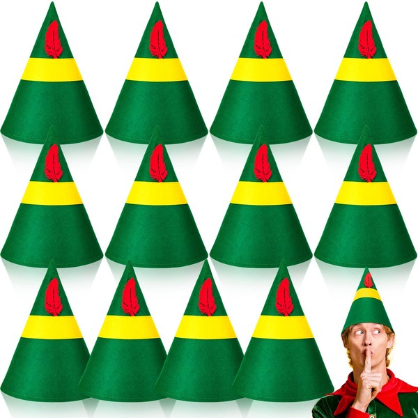 12 Pieces Christmas Elf Hat Costume Elf Hat Xmas Party Elf Accessories for Women Green Holiday Elves Hats Cone Felt Santa Hat Xmas Women's Costume Headwear for Adult Kids Party Costume Accessories