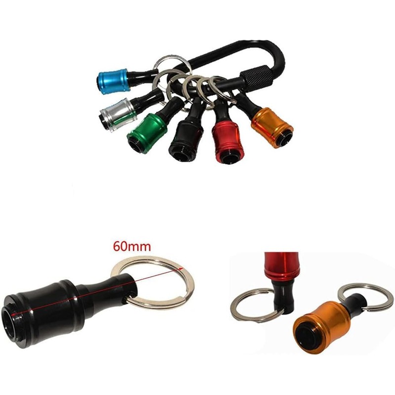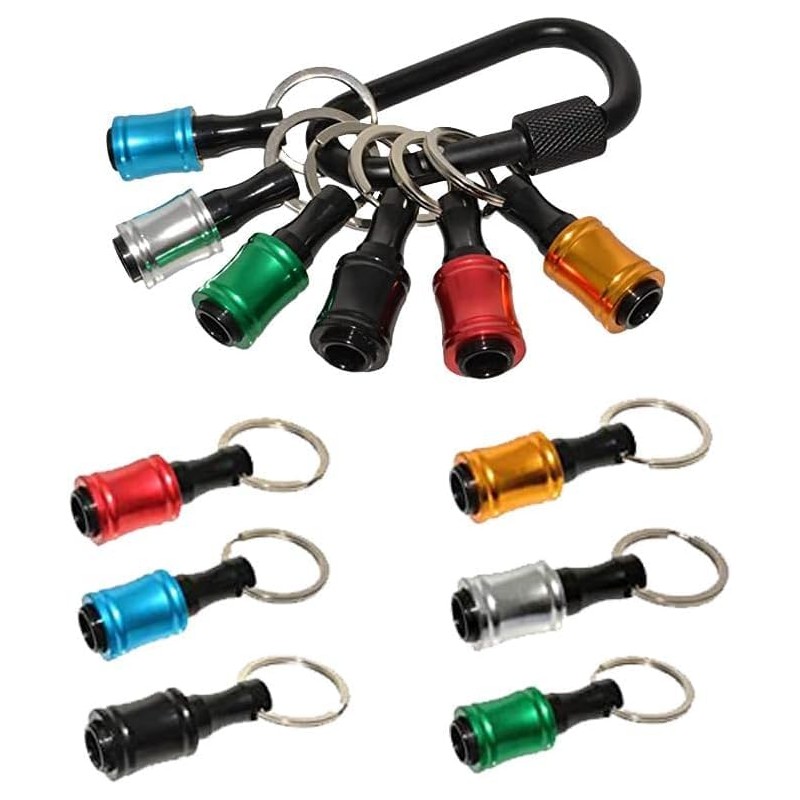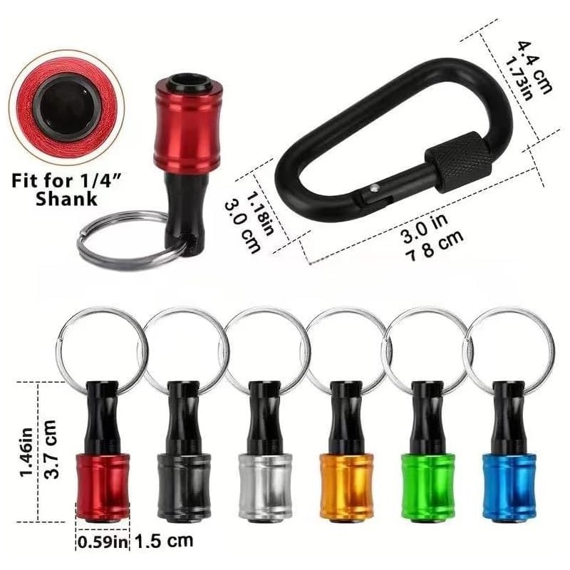 12 Pieces Drill Holders, 1/4 Inch Hex Shank Screwdriver Bit Extension, Aluminium Alloy Screwdriver Bits Holder, Key Chain with Black Carabiner