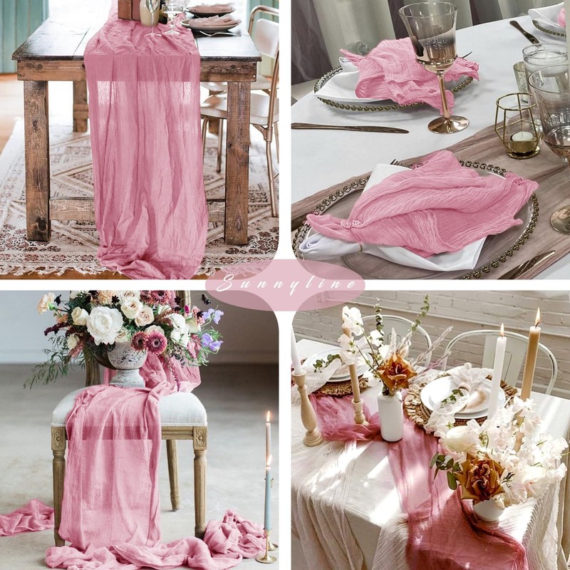 Cheesecloth Runner for Tables Color:Dusty Rose.