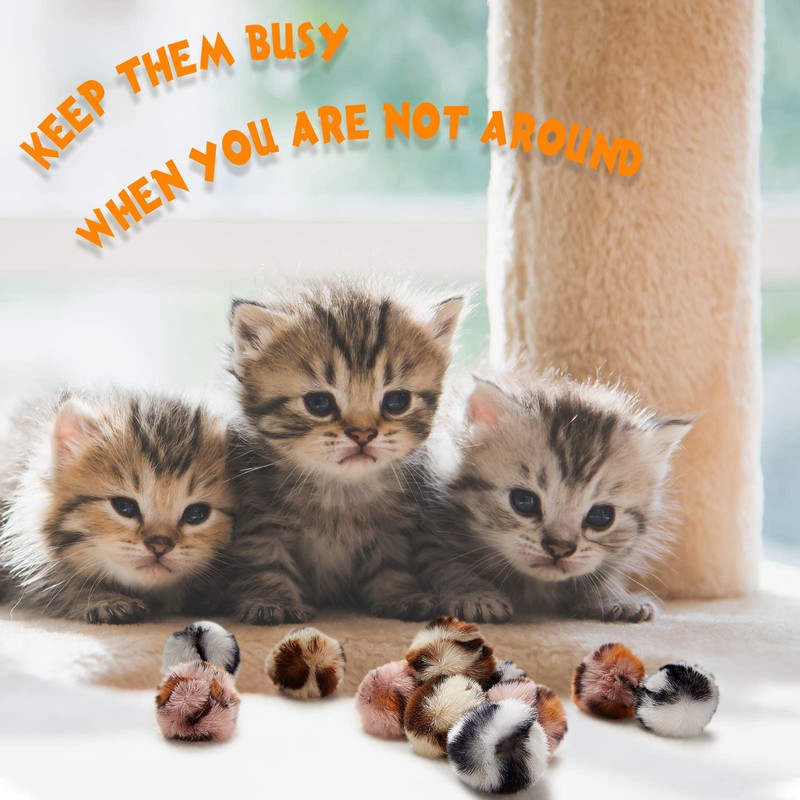• Safe for pets: the cat plush balls are made of faux plush soft fur, they are soft to touch and great for throwing, pouncing, swatting and slapping