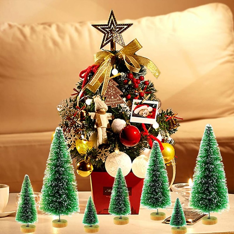 12 Pieces Mini Christmas Trees Bottle Brush Christmas Trees Miniature Trees Bottle Brush Xmas Trees Small Artificial Mini Model Snow Trees Frost Trees, 6.5cm