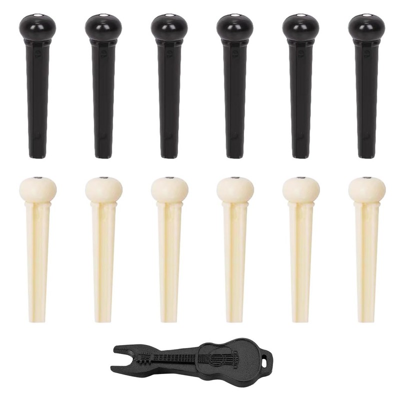 - [Product content] You will receive 12 pieces of guitar tuning nails and 1 piece of guitar stringer.The size of the tuning nail is 3.2*0.8cm, and the colors are black and white, 6 pieces each; the size of the stringer is 2*6cm, and the color is black.Musical instrument accessories suitable for replacing and adjusting guitar strings.