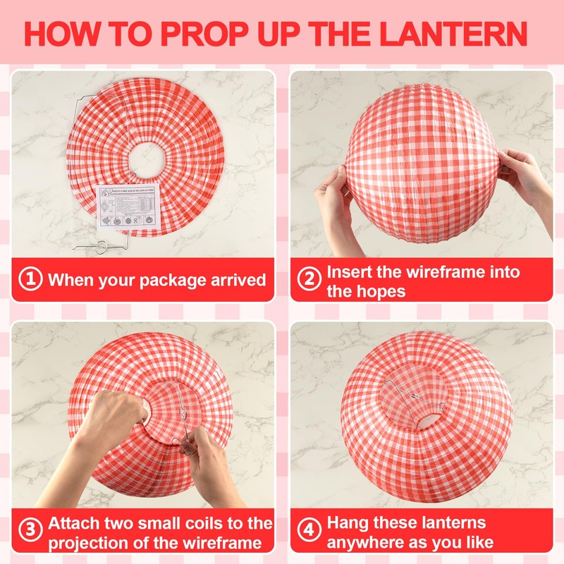 - Vibrant Decoration: the unique combination of red and white check and classic round paper lanterns, with vibrant color designs, symbolize celebration and remind people of traditional festivals, helping to create a joyful atmosphere, adding vitality and rich colors to your indoor or outdoor gatherings