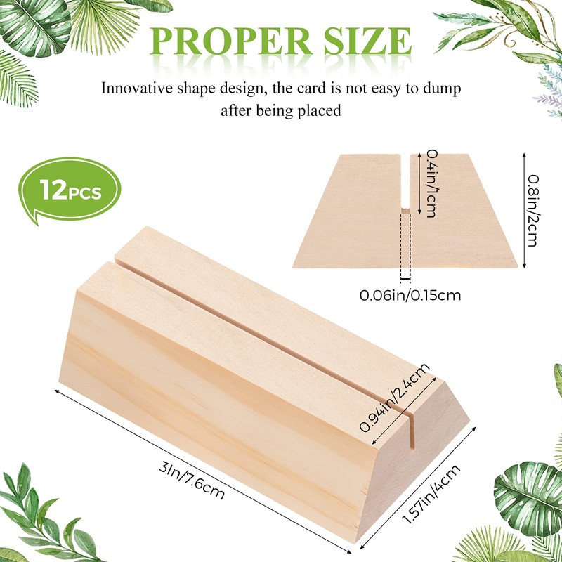 - Suitable measurement: the wooden card display measures about 3 inches in length, 0.8 inches in height, the width at top base is about 0.94 inches, and the width at bottom base is about 1.57 inches; Besides, the socket depth measures approx. 0.4 inches in depth and 0.06 inches in width, which is appropriate for you to apply