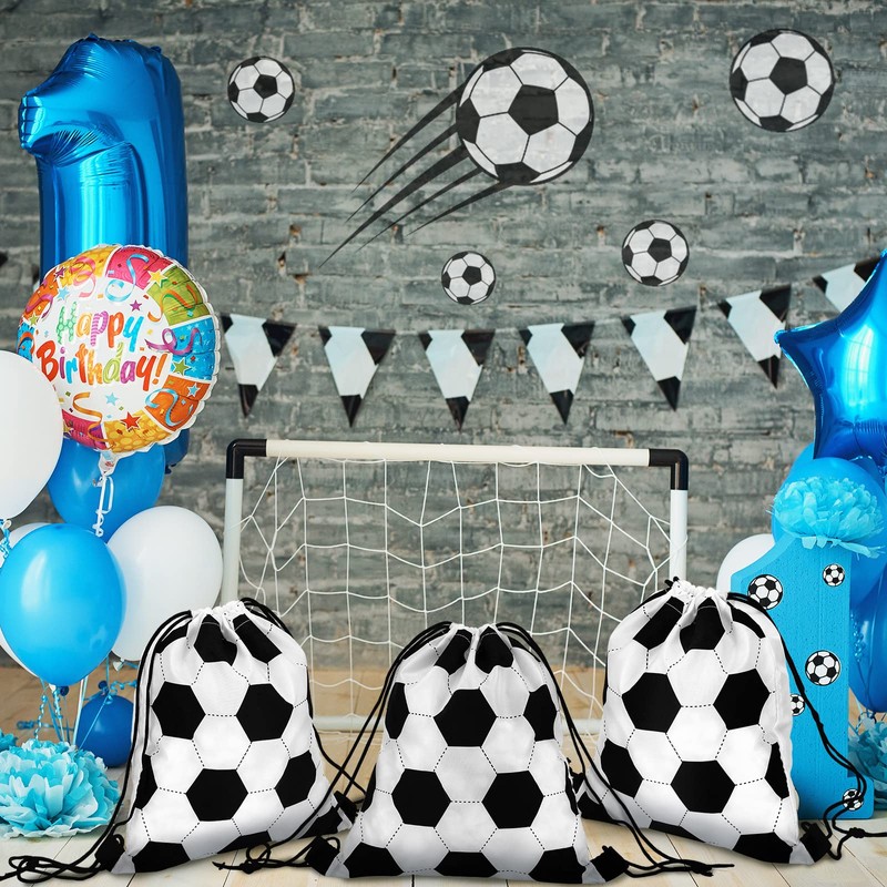 12 Piezas Pequeñas Bolsas Deportivas con Cordón Bolsa de Dulces Bolsas de Regalos con Cordón para Fiestas Deportivas Regalos (Estilo Fútbol, 10 x 12 Pulgadas)