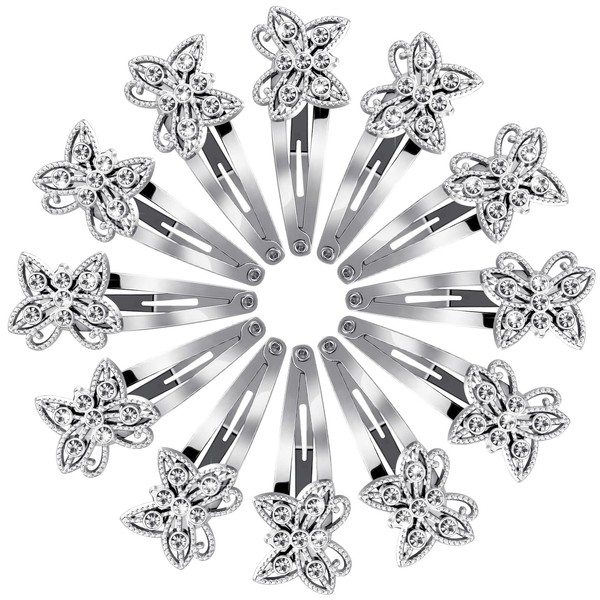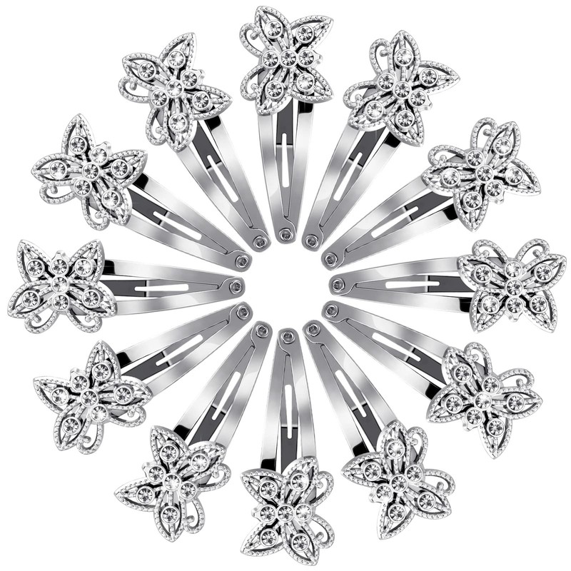 12 pinzas de mariposa para el cabello plateadas con diamantes de imitación, pasadores de metal con purpurina, broches para el cabello para mujeres, horquillas para el cabello brillantes para niñas y bodas