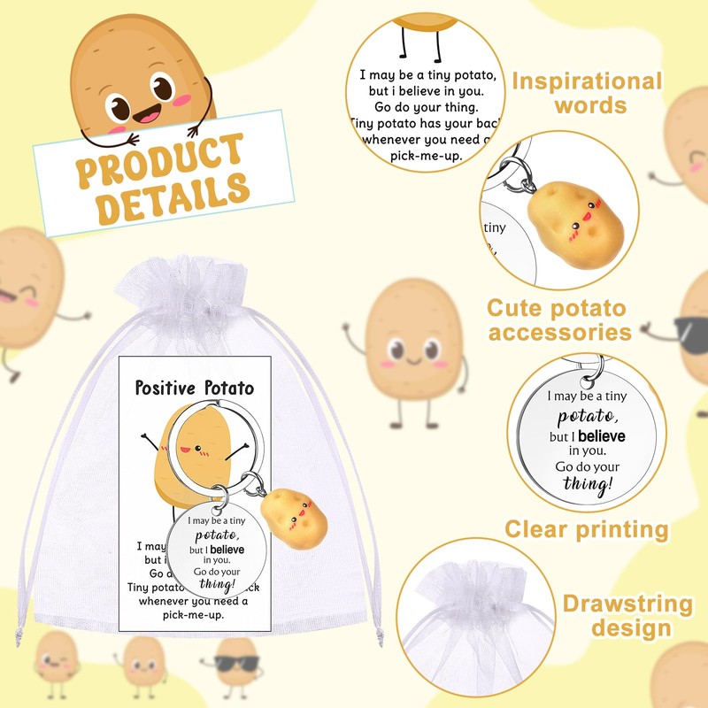 - Emotional Support Gift Set: You will get 36 pieces of thank you gifts, including 12 inspirational potato keychains, 12 inspirational cards and 12 organza bags, the potato themed gifts will leave unforgettable memories for those receivers, you can use them as teacher appreciation gifts, encouragement gifts