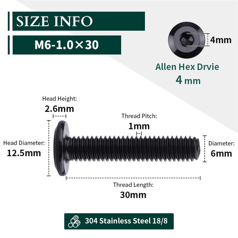 - Package Includes: 12 Sets of M6 X 30mm Screws and M6 X 15mm Binding Nuts, plus a hex wrench