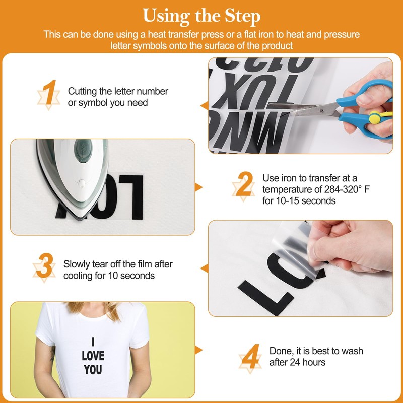 - Effortless Application: With a user-friendly approach, these iron-on are a breeze to use. Simply set your iron to a temperature range of 284-320 degrees Fahrenheit, apply gentle pressure for about 10-15 seconds, and achieve a secure and enduring bond. Please note that the black matte surface of the numbers and letters is the back and the front is smooth. Perfect for both beginners and experienced DIY enthusiasts.