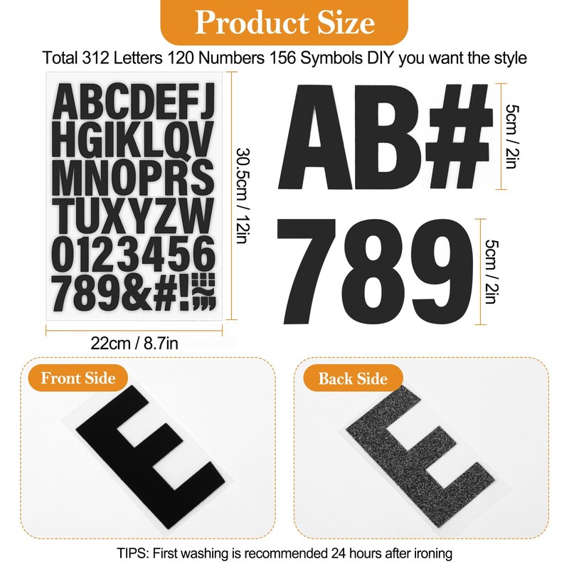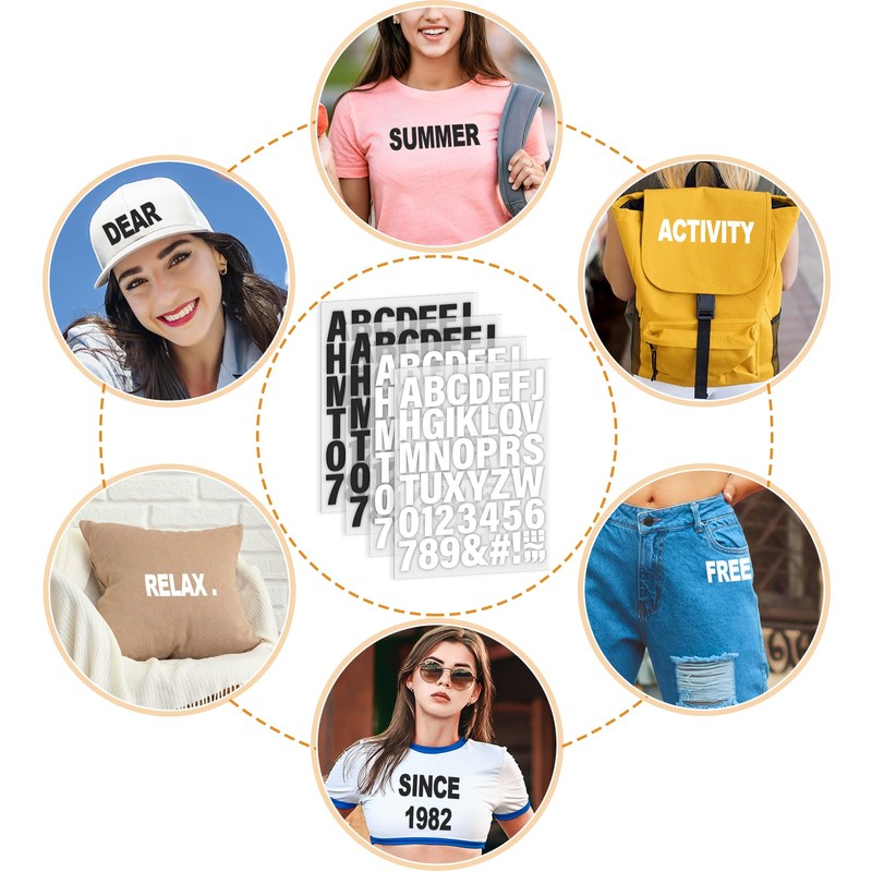- Extensive Character Selection: Our iron-on letter package contains a substantial variety of characters with 312 letters, 120 numbers, and 156 symbols across 12 sheets, which design your clothes, t-shirts, jerseys, bags, hoodies, caps, and a variety of other items. With this assortment, you'll have the freedom to craft personalized messages and designs for multiple projects.