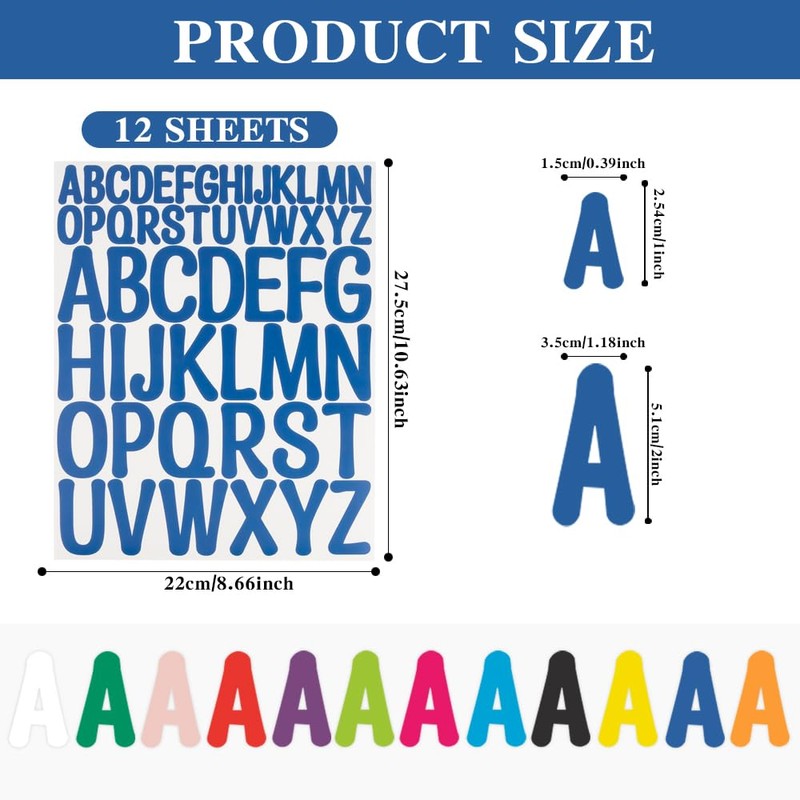 - Sufficient Quantity: The letter stickers set includes 12 sheets with 12 colors and each sheet has 53 pieces 1 & 2 inch letter, which is enough quantity to allow for combination and matching, meeting your various decorative needs. Our alphabet stickers are sufficient quantity, providing various bright colors and different styles, and sharing them with classmates, friends or family.