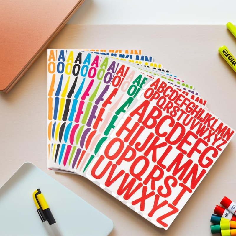 Package Includes: 12 sheets 1 & 2inch letter stickers