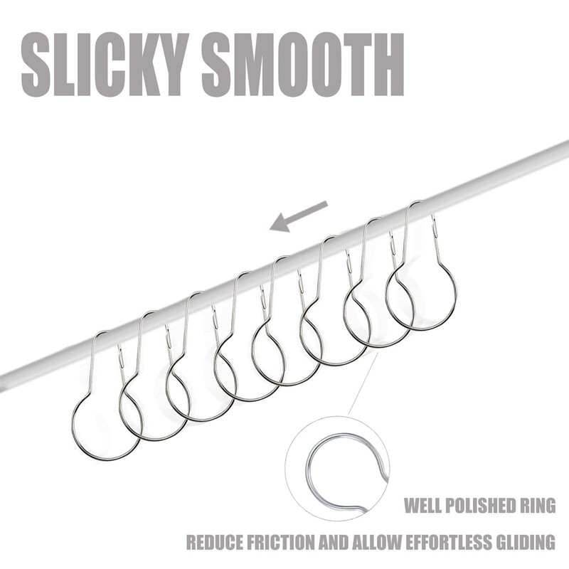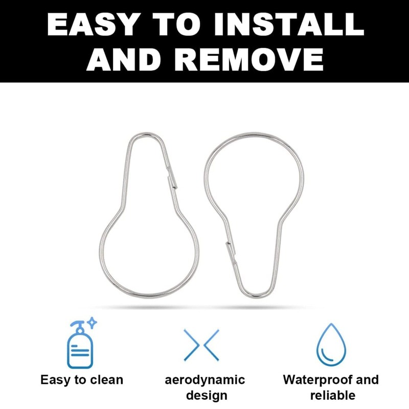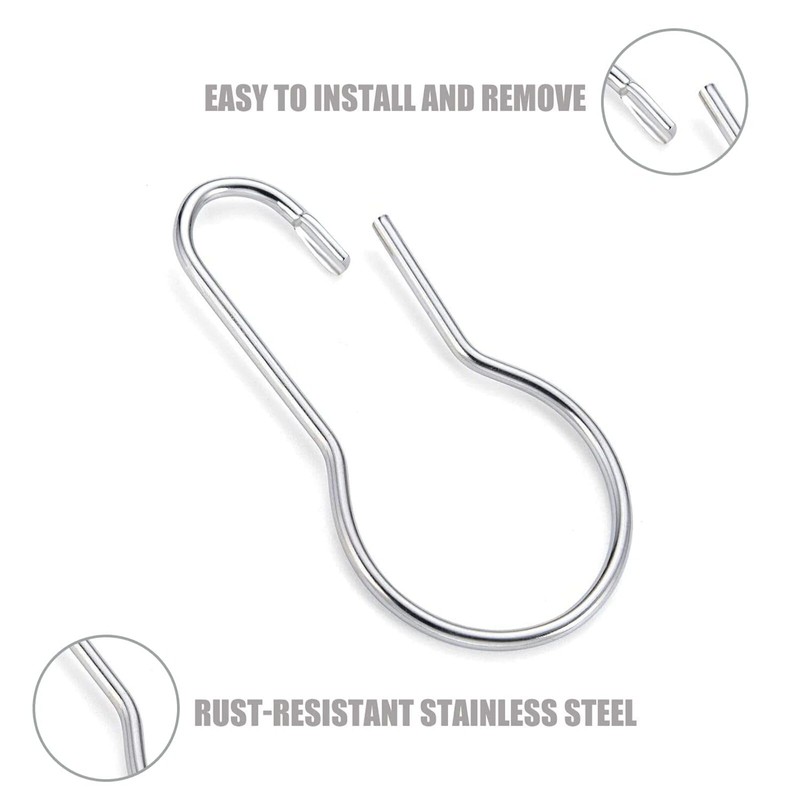 Built to withstand years of use, our shower curtain hooks are incredibly durable and easy to maintain. Simply wipe them down with a damp cloth to keep them looking like new. These hooks are designed to last, and their stainless steel construction ensures they will remain rust-free and reliable for years to come. Enjoy a sleek and functional bathroom accessory that combines style with durability, and makes your shower experience more pleasant every day.