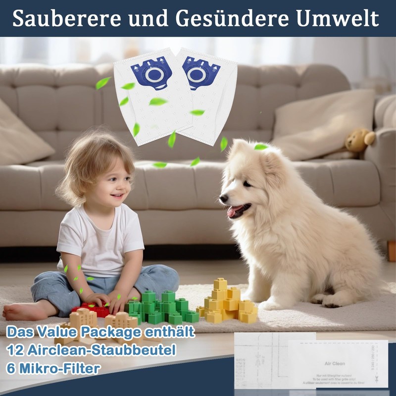 12 Staubsaugerbeutel Ersatz für Miele S8340 S8360 Classic C1 Complete C2/C3 Miele S227 S400i S600 S5000 und S8000 Series mit 6 Mikro-Filter, GN 3D Efficiency Airclean Staubbeutel