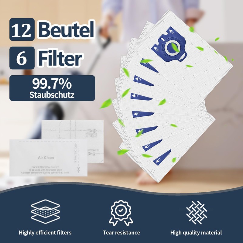 - Premium Material: Die miele s8360 staubsaugerbeutel bestehen aus hochwertigen Schmelzblasfasern und Vliesstoffe. Das 5 - Schicht-Filtrationssystem filtert 99,99% von Feinstaubchen unter 0,3 Mikrometer. Es gibt einen starken Plastikdichtungsdeckel, ohne dass das Risiko eines Auslaufens besteht