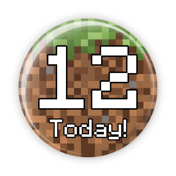 12 Today 12th Birthday - Inspired by Mine Crafting Crafts Video Game Gaming Gamer Birthday Badges Pin Button Badge - Large 76 mm