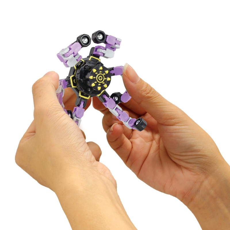 - Each fidget spinner has six deformable chains. Each of the links can pivot and lock into 5 positions, you can create any shapes you want, such as various shapes of spinners, robots and even mobile phone holders. It can also exercise your kid’s hands-on ability, hand-eye coordination and logical thinking ability by changing the shape of the toys