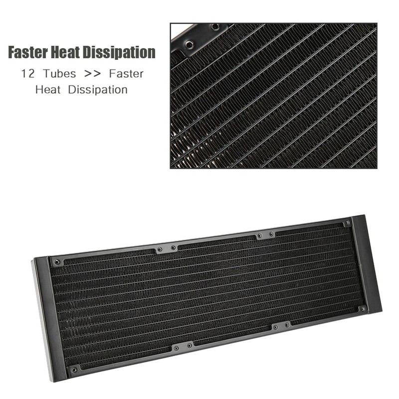 - 12 Tubes - This pc heat exchanger adopts 12 tubes design to accelerate the water flow to achieve faster heat dissipation, thus ensuring the stability and smoothness of CPU working.