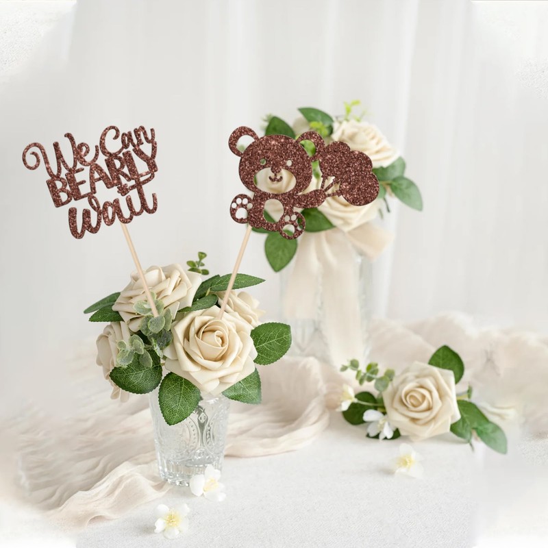 - Amplios usos: Estos bastones de mesa que podemos esperar son perfectos para fiestas temáticas de oso de bebé, fiesta temática de revelación de género, fiesta temática de baby shower, centros de mesa de cumpleaños para niños, decoraciones florales, pueden hacer que la mesa o flor sea más atractiva y traer la diversión a tu fiesta.