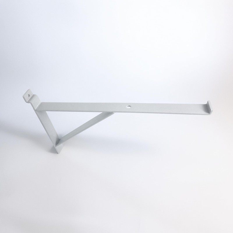- Insert these heavy duty metal brackets with support into your slatwall. The support bracket gives you the extra strength to shelves to easily display heavier items.