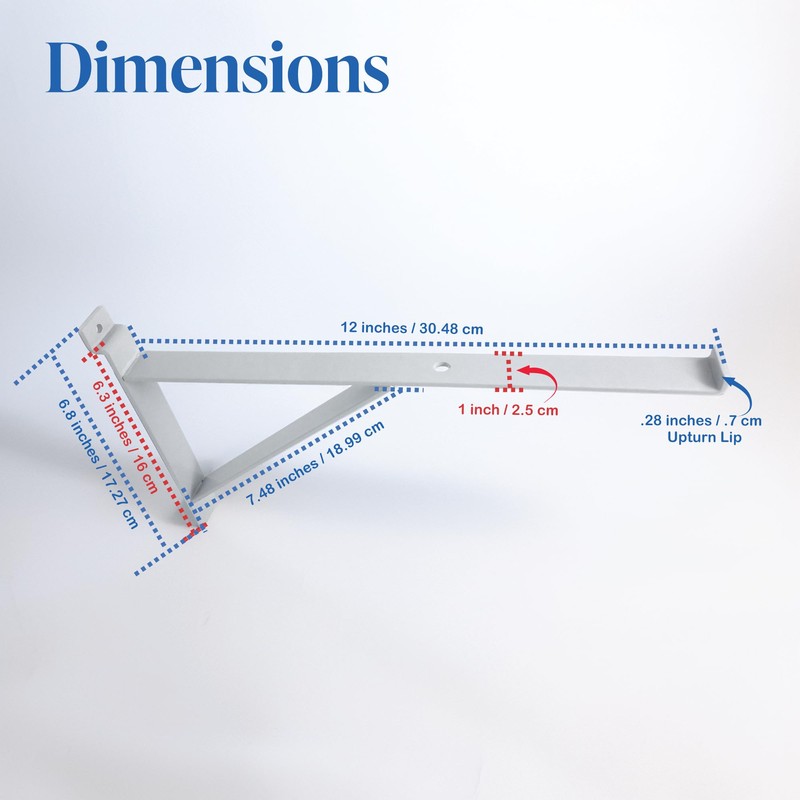 12" White Heavy Duty Slatwall Shelf Bracket with Support & Lip - 4 Pack
