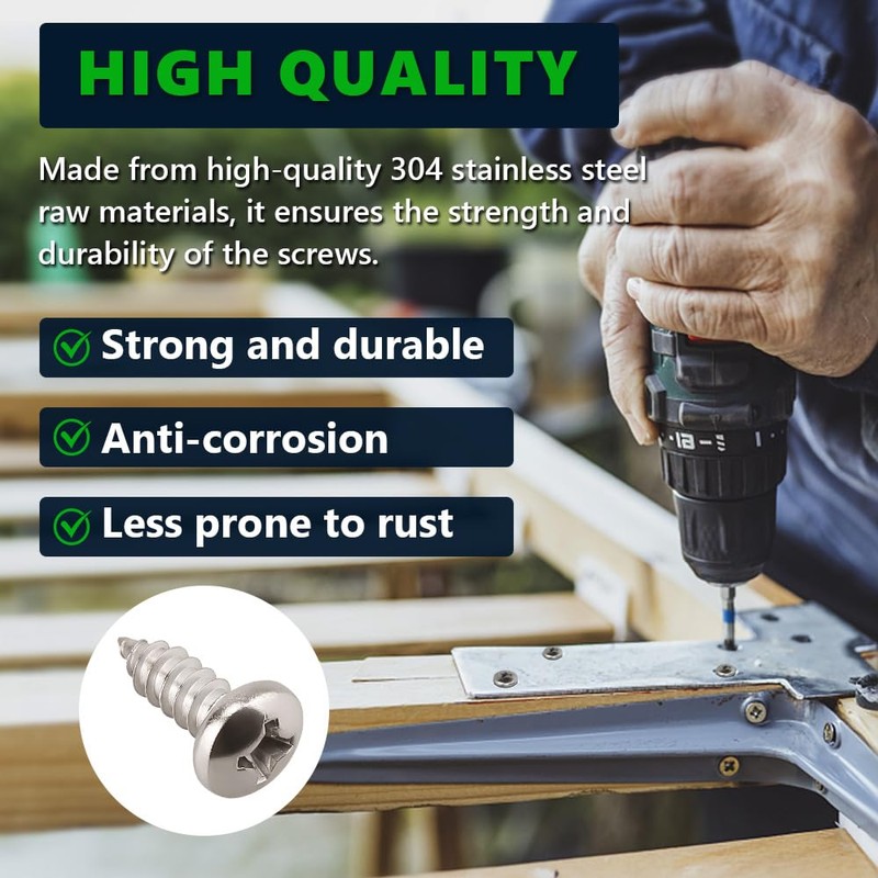 - Material: High Quality 304 Stainless Steel, great strength and good corrosion resistance to make fasteners last!