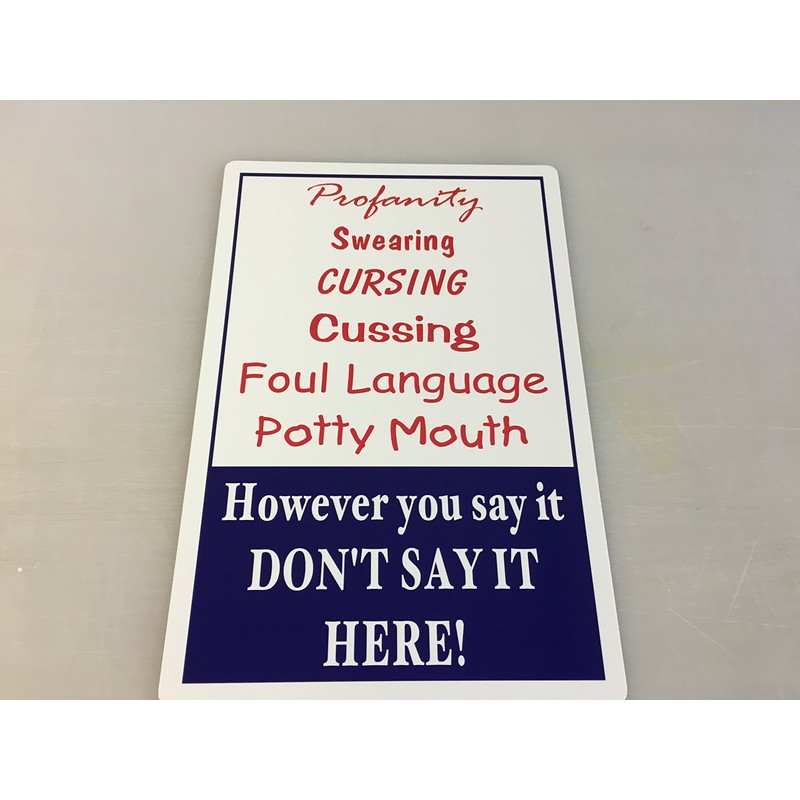 12" X 18" PVC SIGN FOR BUSINESS NO FOUL LANGUAGE CURSING CUSSING POTTY MOUTH