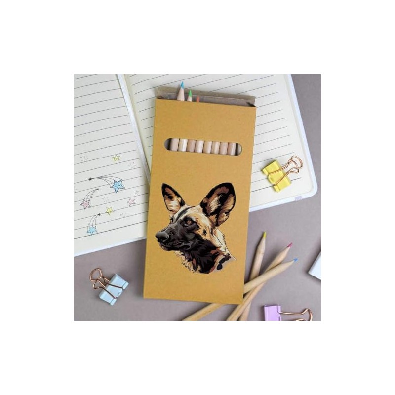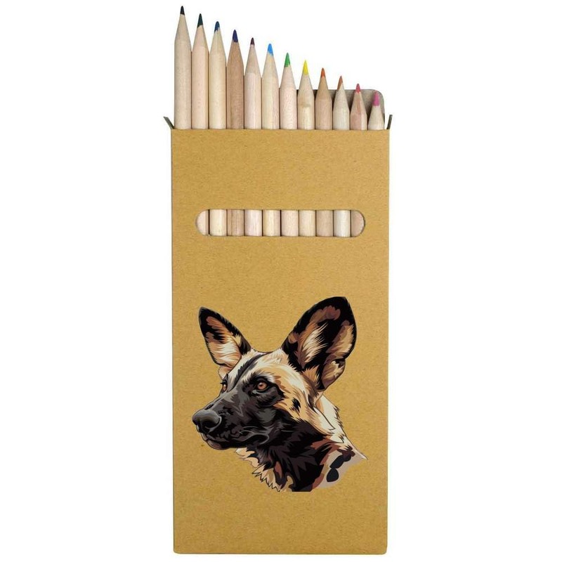 12 x 'African Wild Dog Side View' Long 178mm Coloured Pencils/Pencil Set (PE00067943)