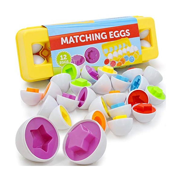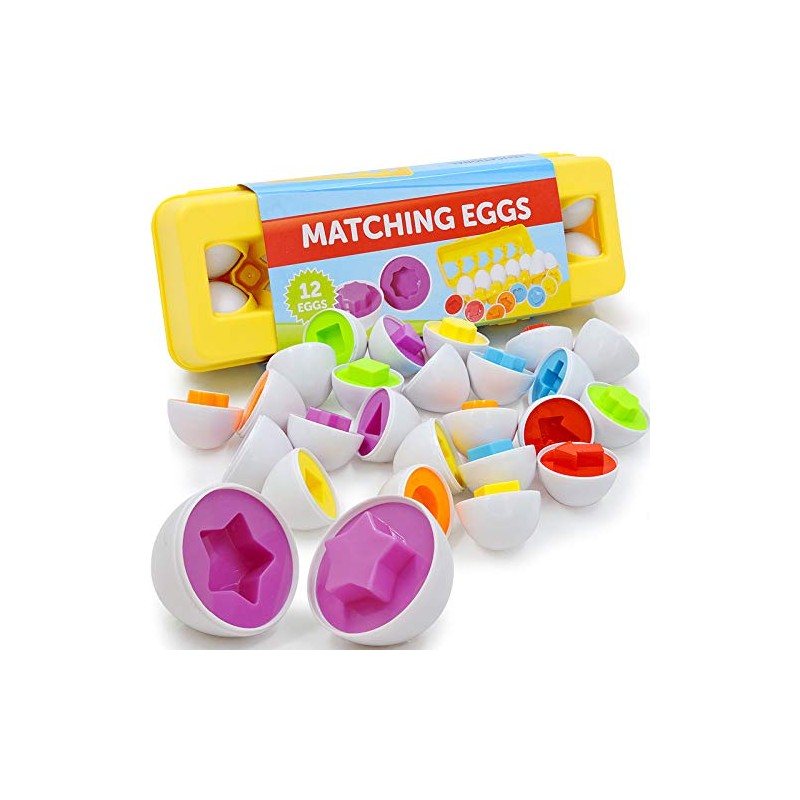 - Education Toy to help development - Developing hand/eye coordination has never been more fun than with our matching eggs set! With a variety of matching colours and shapes this toy helps build colour and shape recognition. This also helps build thinking ability and fine motor skills.