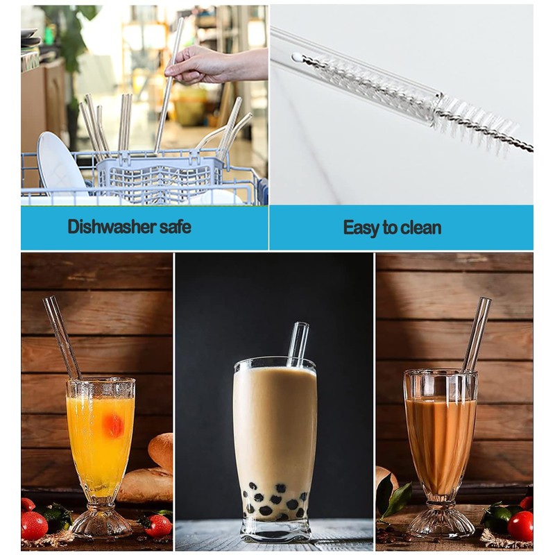 - The glass straws can be easily cleaned in the dishwasher. Equipped with 2 cleaning brushes that make washing different straws easier.