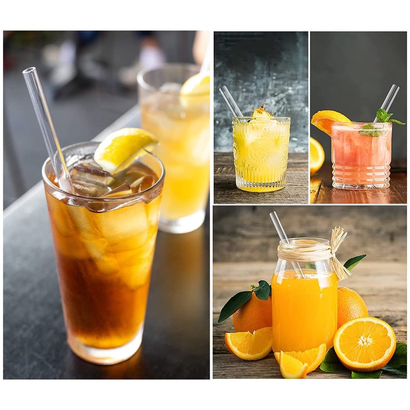 - The sturdy premium glass drinking straws – our product consists of 12 glass straws and 2 brushes. Our reusable glass straws contain 12 pieces 8.5 inch long straight straws. 2 pieces 21.5 cm cleaning brush can thoroughly clean the whole straw. Perfect for cocktails, lemonade, iced tea etc.