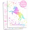 - Great glitter effect - The front decorated with partial glitter varnish highlights the unicorn, the stars, as well as the visual writing and thus creates a great contrast and a special quality. Due to the matte, uncoated back, our cards can not only be written on with any pen, but there is also no annoying smudging.