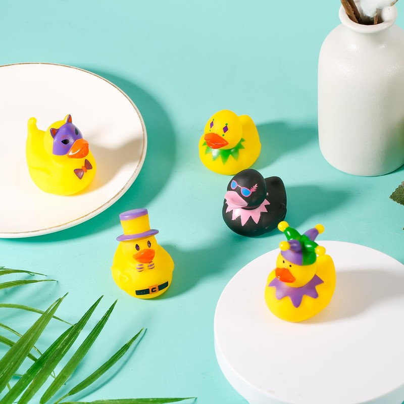 - Package contents: you will receive 12 pieces of Mardi Gras rubber ducks, with 5 different designs, sufficient quantity and rich design can meet your various needs and provide a nice holiday time.