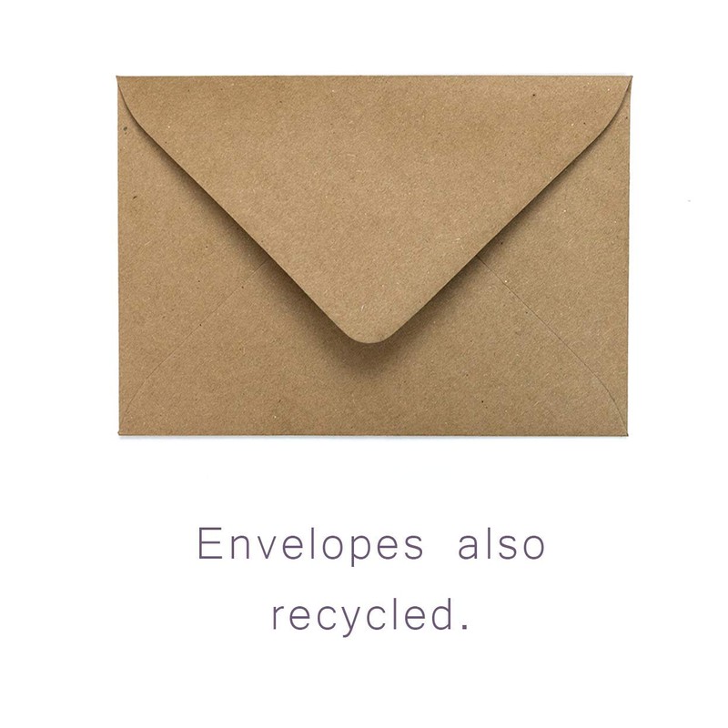 - Eco Friendly: Both the cards and envelopes are made from recycled paper. Plus we use no plastic wrapping or packaging.