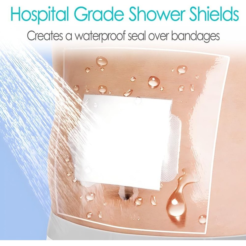 - 🍃NON-STICK TO WOUNDS - Stays where you put on, does not stick your port and gauze! The wound shower bandage cover specially designed with no glue pad on the center, when you need remove the waterproof bandage post surgical it will not tear your skin off! Each shower adhesive bandage protector has a non-adherent center pad with an adhesive bordered dressing that adheres only to the surrounding skin, definitely suits for shower with wound like breeze!